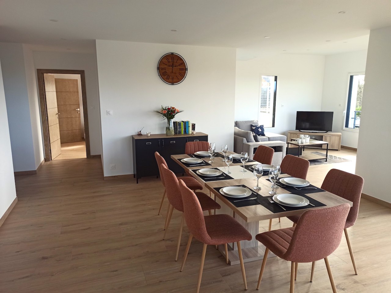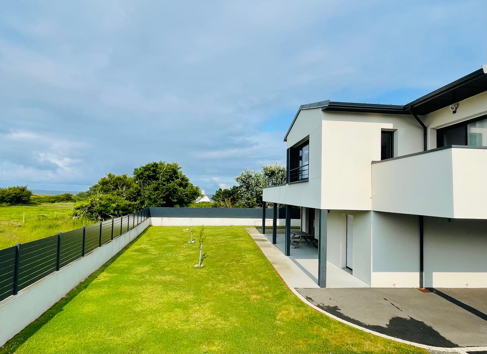 Modernes Ferienhaus (erbaut in 2023) mit herrlichem Meerblick für bis zu 8 Personen, 300 m vom Meer entfernt, mit 500 m² umzäunten (160cm hoch) Garten. Hunde (2 max) sind willkommen.